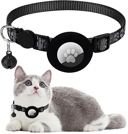 Легко отслеживайте местоположение вашего питомца: наш светоотражающий ошейник для кошек был специально разработан для воздушной метки и оснащен силиконовым держателем, который обеспечивает надежную фиксацию устройства и полную защиту от падения или свисания. Прочная встроенная конструкция предотвращает случайное освобождение метки во время занятий, что делает отслеживание более надежным! (Обратите внимание: воздушная метка не входит в комплект) Конструкция защитного крючка: прочная конструкция защитного крючка позволяет быстро освободить кошку в непредвиденных ситуациях на открытом воздухе, чтобы избежать случайных травм. Ошейник для кошек Airtag также оснащен светоотражающими полосами, поэтому вы можете быстро определить местонахождение вашего питомца даже ночью. Это повышает безопасность в ночное время и гарантирует, что ваша кошка будет чувствовать себя комфортно во время игр на улице. Удобный материал: ошейник для кошек изготовлен из высококачественного нейлона, который мягкий и удобный и эффективно защищает шею вашей кошки от истирания и повреждения шерсти. Он подходит для длительного ношения и гарантирует, что ваш питомец будет чувствовать себя комфортно во время активного отдыха или отдыха в доме. Держатель метки изготовлен из водонепроницаемого силикона, что обеспечивает правильную работу метки в любых погодных условиях. Простой дизайн, легко чистится: симпатичный дизайн со светоотражающими полосками в виде кошачьих лапок сочетает в себе современную эстетику и функциональность. Он служит не только ошейником для домашнего животного, но и модным аксессуаром для вашей кошки. Защитный ошейник для кошек легко чистить: просто аккуратно протрите его влажной тканью, чтобы удалить пыль и грязь, и убедитесь, что он остается чистым даже при ежедневном использовании. Регулируемый ошейник для кошек: длину персонализированного ошейника для кошек можно регулировать от 19 до 32 см, что делает его подходящим для кошек разных размеров. Ошейник легко регулируется, поэтому вы можете менять его размер по мере роста вашей кошки, чтобы обеспечить постоянный комфорт. Независимо от того, есть ли у вас котенок или большая кошка, вы всегда сможете найти подходящий размер. ›