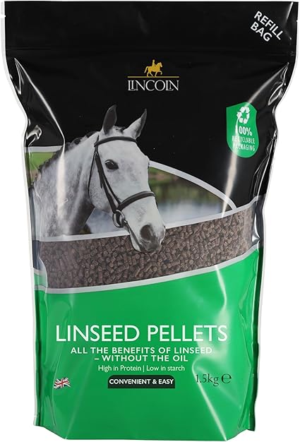 Гранулы льняного семени Lincoln, сменный пакет 1,5 кг — для общей поддержки здоровья лошадей.