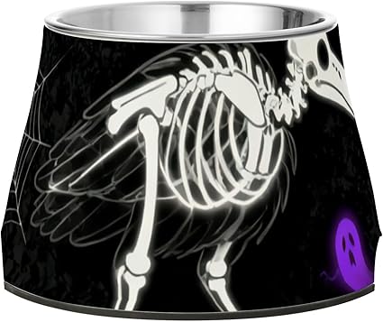 Миска для домашних животных в виде птичьего скелета на Хэллоуин, нескользящая, из нержавеющей стали, для собак, для медленного кормления, с усами, от усталости.