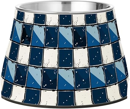 Миска для корма для собак в сине-белую клетку с подставкой из нержавеющей стали. Подставка для медленного кормления собак. Whiskers Relief