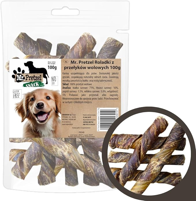 Mr. Pretzel – Лакомства для собак – 100 г – 100% натуральный – Богатый белком перекус – Уход за зубами и поддержка пищеварения – Без добавок