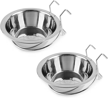 Набор из 2 подвесных мисок из нержавеющей стали с крючками для птичьих клеток, курятников, собак, кошек, попугаев, птиц, кроликов (16,5 см).
