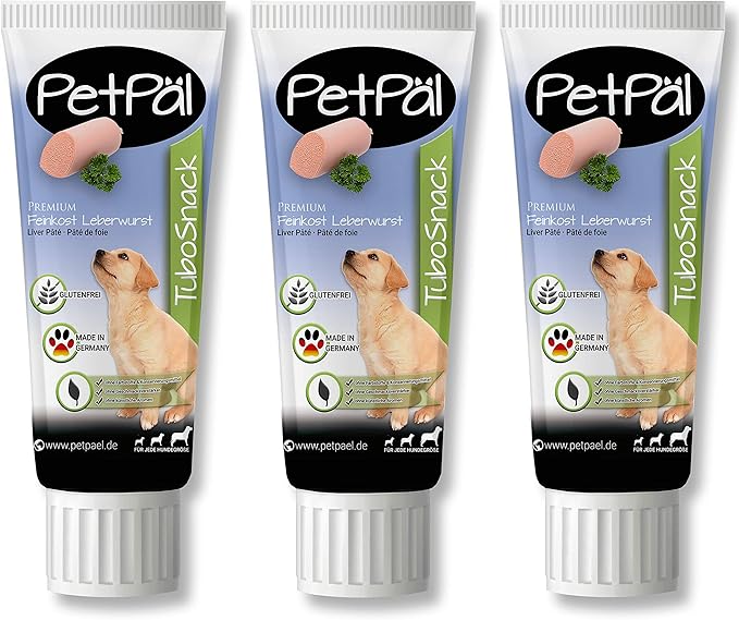 PetPäl Dog Liver Sausage Tube Snack — 3 x 75 г — Премиальное лакомство из тюбика — Натурально без зерна, соли и сахара — Для собак и щенков — Натуральный перекус, перекус — Сделано в Германии
