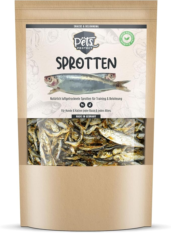 Pets Protect Spratti 150 g, prelibatezze di pesce essiccato intero essiccato per cani e gatti di tutte le età, fornitore di sostanze nutritive e vitali ricco di proteine, adatto per piatti BARF
