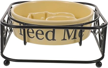 — Материал: Керамика, железная миска для собак для удобного поедания корма