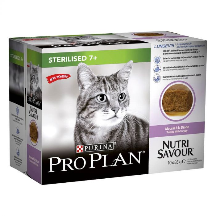 Purina Proplan Cat Nutrisavor Sterilized 7+ Turkey Mousse — это полноценный корм в форме мусса для стерилизованных/стерилизованных взрослых кошек в возрасте 7 лет и старше.