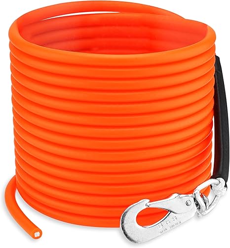 БЕЗ ПЕТЕЛЬ — Наш поводок для полевых работ не имеет ручного ремня, что предотвращает его запутывание в подлеске или на заросших тропинках. Грязеотталкивающий: благодаря пластиковому покрытию поводок не впитывает грязь и воду. Липучки и листья не имеют шансов налипнуть. ПРОЧНОСТЬ: Благодаря прочности на разрыв до 230 кг и прочному шведскому карабину поводок идеально подходит для крупных и сильных собак. Различная длина: доступен в размерах от 5 до 30 м, поводок идеально подходит для собак всех размеров и для различных ситуаций дрессировки. МНОГОЦЕЛЕВОЙ — Идеально подходит для снятия давления с поводка, дрессировки на подзыв, охоты и первых тренировок молодых собак.