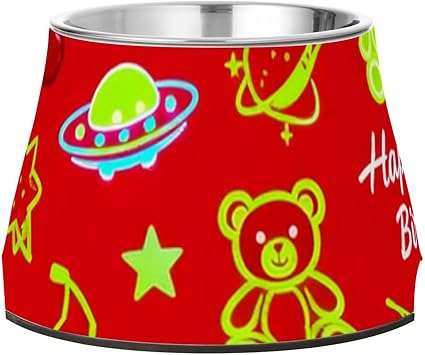 ‘Happy Birthday’ statek kosmiczny i samochody czerwone zwierzęta miski na wodę i jedzenie podwyższona stal nierdzewna metalowe miski dla małych zwierząt domowych powolne jedzenie cuencos elevados para