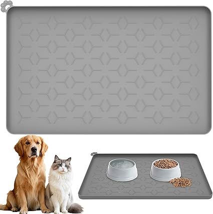Silikonowe maty do karmienia dla zwierząt domowych – wodoodporne maty dla psów i kotów z podwyższonymi krawędziami — 60 x 40 cm