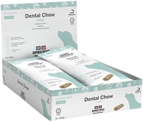 Описание: SPECIFIC™ CT-DC-L DENTAL CHEW — LARGE — инновационный лакомство, специально разработанное для взрослых собак весом более 15 кг. Благодаря своей эластичной текстуре и открытой структуре, оно обеспечивает глубокое проникновение в зубы, способствуя естественному уменьшению зубного налета и зубного камня. Сочетание высококачественных ингредиентов, таких как гексаметафосфат, фосфат витамина С, морские водоросли и экстракт зеленого чая, способствует гигиене полости рта и свежему дыханию. Это вкусное лакомство поддерживает здоровье полости рта и может дополнить ежедневный уход за зубами вашей собаки. Его низкая калорийность помогает снизить риск ожирения при правильном кормлении. Кроме того, оно упаковано в 100% перерабатываемый материал, что делает его экологически чистым выбором. Состав: рисовая мука, картофельный крахмал, растительный глицерин, сушеный свиной белок, целлюлозный порошок, сушеные морские водоросли, минералы (включая 2% гексаметафосфата натрия), кукурузный белок, экстракт зеленого чая, масло эвкалипта, масло петрушки, экстракт граната, экстракт клюквы. С натуральными антиоксидантами (токоферолами и витамином С). Без искусственных красителей и ароматизаторов.