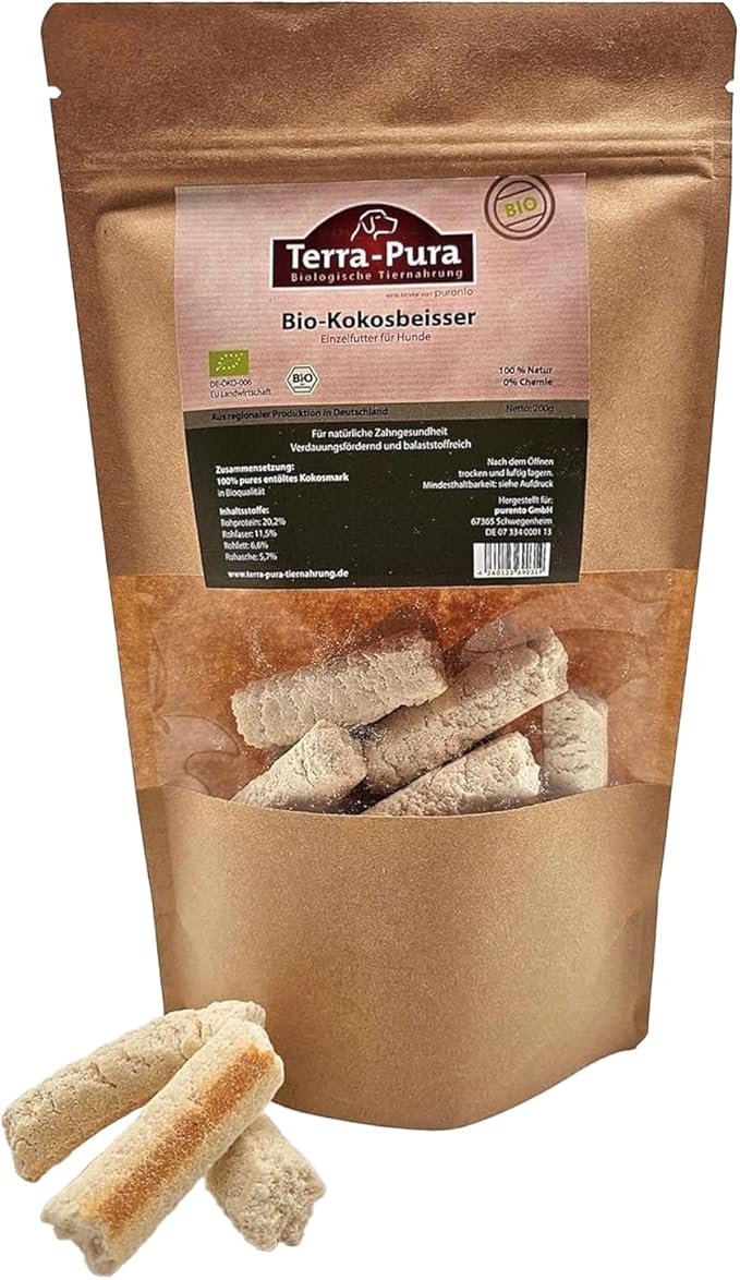 Здоровое лакомство для собак: Органические кокосовые палочки — это полезное и вкусное лакомство для вашей собаки, изготовленное из чистого органического кокоса, идеально подходящее для вашей собаки. Корм для собак органического качества. Уход за зубами и богатый питательными веществами: Кокосовые палочки естественным образом очищают зубы вашей собаки и богаты ненасыщенными жирными кислотами и витамином B1 для поддержания здоровья. Натуральная защита от клещей: Благодаря эффективным свойствам кокоса, органические кокосовые палочки также могут помочь защитить вашу собаку от клещей, а также служат вкусным лакомством. Поддержка здоровья кишечника: Органические кокосовые палочки способствуют созданию свободной от глистов среды в кишечнике вашей собаки, что помогает предотвратить заражение глистами и поддерживать здоровье кишечника. Органическое качество и удобная упаковка: Изготовленные из высококачественного органического кокоса, кокосовые палочки являются полезным дополнением к корму для собак. Удобная упаковка вмещает 100 г и позволяет легко делить на порции для ежедневного использования. › Подробнее о продукте