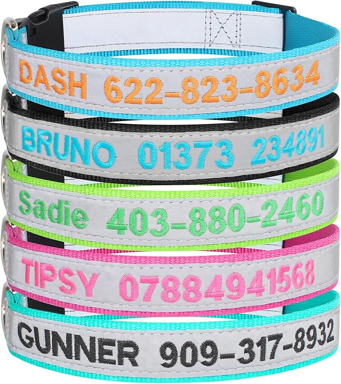 Светоотражающий ошейник для собак с персонализацией, именем и номером телефона, вышитым идентификационным номером, разноцветный, 4 регулируемых размера: XS, S, M, L