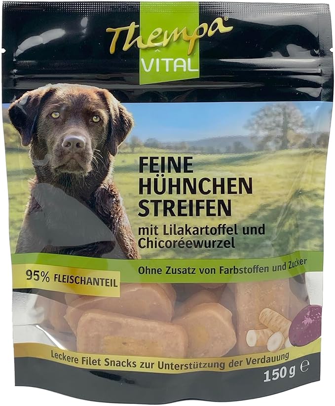 Описание продукта: С фиолетовым картофелем и корнем цикория для улучшения пищеварения. Эти закуски содержат 95% мяса и не содержат добавленного сахара. Состав: Филе куриной грудки 95%, кукурузная мука, пшеничная мука, фиолетовый картофель 0,85%, корень цикория 0,25%, минералы. Аналитические компоненты: Сырой протеин 58%, сырой жир 4,5%, сырая зола 4%, сырая клетчатка 1%, влажность 18%. Добавки: Технологические добавки: Консерванты. Ингредиенты: Филе куриной грудки 95%, кукурузная мука, пшеничная мука, фиолетовый картофель 0,85%, корень цикория 0,25%, минералы. Инструкция по применению: См. упаковку. Смотреть больше