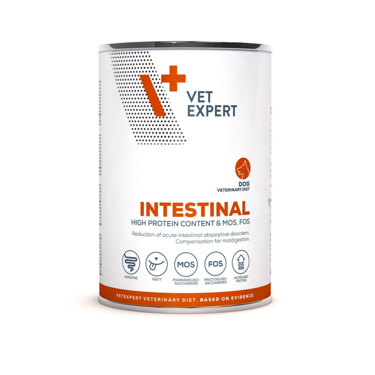 Полнорационный, легкоусвояемый влажный диетический корм, рекомендованный для собак с желудочно-кишечными, пищеварительными и всасывающими расстройствами, а также для поддержки возвращения к нормальному питанию в период выздоровления. Высокая усвояемость питательных веществ облегчает пищеварение и всасывание у животных с пищеварительными расстройствами. Повышенное содержание электролитов компенсирует потери, вызванные рвотой и диареей. Показания: балансировка расстройств пищеварения, уменьшение кишечной мальабсорбции и острых кишечных нарушений всасывания, восстановление нормального питания, выздоровление, может использоваться для щенков, может использоваться при хронической панкреатической недостаточности. Особенности Преимущества Высокое содержание белка Высокое содержание белка облегчает доставку питательных веществ у животных с пищеварительными и всасывающими расстройствами. Увеличивает количество питательных веществ, усвояемых организмом животного. ФОС Стабилизирует кишечную микрофлору и обеспечивает энергией клетки толстого кишечника. Уменьшает количество фекалий. МОС Стимулирует иммунные процессы в кишечнике. Пищевые волокна Низкое содержание улучшает усвояемость корма. Корм не рекомендуется для кошек. Состав: мясо и мясные субпродукты (50% ягненок), овощи (10% картофель), масла и жиры (0,1% лососевое масло), субпродукты растительного происхождения Юкка Шидигера 0,1%, ФОС 0,1%, МОС 0,1% Добавки: витамин D3 — 200 МЕ, цинк (сульфат цинка моногидрат) — 25 мг, марганец (сульфат марганца, моногидрат) — 1,4 мг, йод (йодат кальция, безводный) — 0,75 мг Аналитический состав: сырой протеин 8,6%, сырые масла и жиры 5,2%, углеводы 3,8%, n-3 жирные кислоты 0,1%, n-6 жирные кислоты 0,4%, сырая клетчатка 0,5%, сырая зола 1,9%, влажность 80%, кальций 0,18%, фосфор 0,15%, калий 0,3%, натрий 0,16%, витамин D3 200 МЕ/кг, витамин E 20 МЕ/кг, витамин B1 10 мг/кг, витамин B2 6 мг/кг, витамин B12 75 мкг/кг, никотинамид 15 мг/кг, пантотенат кальция 9 мг/кг, фолиевая кислота 0,35 мг/кг, биотин 300 мкг/кг, хлорид холина 1,2 мг/кг, йод 0,75 мг/кг, марганец 1,4 мг/кг, цинк 25 мг/кг. Обменная энергия: 92 ккал/100 г Дозировка: кг<5>10>30г / 24ч200400800 Пищевая ценность: Этот корм соответствует потребностям в питании щенков и взрослых собак. Перед кормлением или продлением периода кормления проконсультируйтесь с ветеринаром. Рекомендуемая продолжительность кормления при острой диарее и в период реконвалесценции: 1–2 недели. Компенсация дефицита питательных веществ, вызванного мальабсорбцией: 3–12 недель. При хронической панкреатической недостаточности применять пожизненно. Упаковка: 400 г.