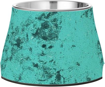 Винтажная миска для корма для домашних животных бирюзового цвета с зернистой текстурой, модернизированная миска из нержавеющей стали для кошек и собак среднего размера, помогает при усталости шерсти.