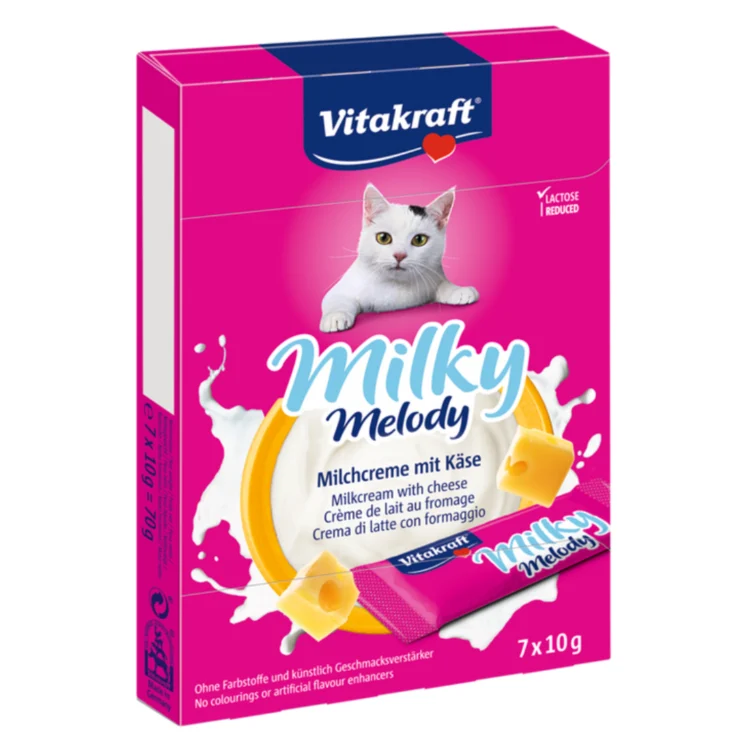 Кремовые, жидкие лакомства в пакетиках. Густой молочный крем с сыром. Без добавления сахара, красителей и консервантов. Обогащены инулином. С добавлением таурина, который способствует здоровью зрения и поддерживает работу сердца. Подходит в качестве перекуса. Гарантированная свежесть благодаря индивидуальной упаковке. Эти нежные лакомства можно давать вместе с едой или прямо из пакетика (например, с руки). Они идеально подходят для взаимодействия с вашим питомцем, укрепляя связь между человеком и животным. В упаковке 7 пакетиков по 10 г каждый.