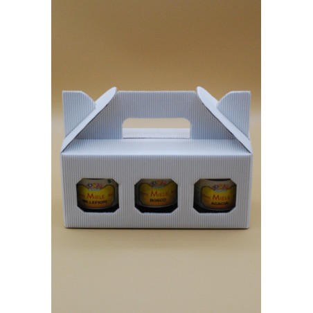 БЕЛЫЙ держатель банок коробка для 3 банок мёда по 250 гр.