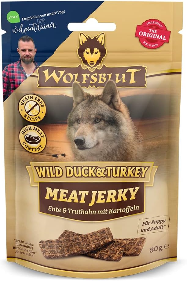 Описание продукта Wolfsblut Meat Jerky Black Bird Индейка и картофель. Популярное лакомство для собак с очень высоким содержанием мяса — поощрение и дрессировка в удобном многоразовом пакете. Meat Jerkys отличаются особенно высоким содержанием мяса (80%), богаты ценными суперпродуктами и, естественно, не содержат зерна. Благодаря своей мягкой текстуре, Jerkys легко порционируются и могут использоваться как во время тренировок в качестве перекуса, так и после тренировок в качестве вкусного поощрения. Кратко: высокое содержание мяса, свежая, легкоусвояемая индейка в качестве основного ингредиента. С ценными суперпродуктами, такими как женьшень, боярышник и шалфей. Благодаря ценным ингредиентам и высокому содержанию белка они являются отличным усилителем после тренировки или поощрением между ней. Не тестировалось на животных, подходит для собак всех возрастов и размеров. Беззерновой корм, поскольку он присутствует в естественном рационе собак, не вызывает аллергии. Кроме того, он не содержит глютена, кукурузы, сои, усилителей вкуса, химических красителей и искусственных консервантов, поскольку служит для поддержания здоровья в течение длительного времени. Практичная запирающаяся сумка. Ингредиенты. Различные способы применения. Обеспечить водой. Смотреть больше